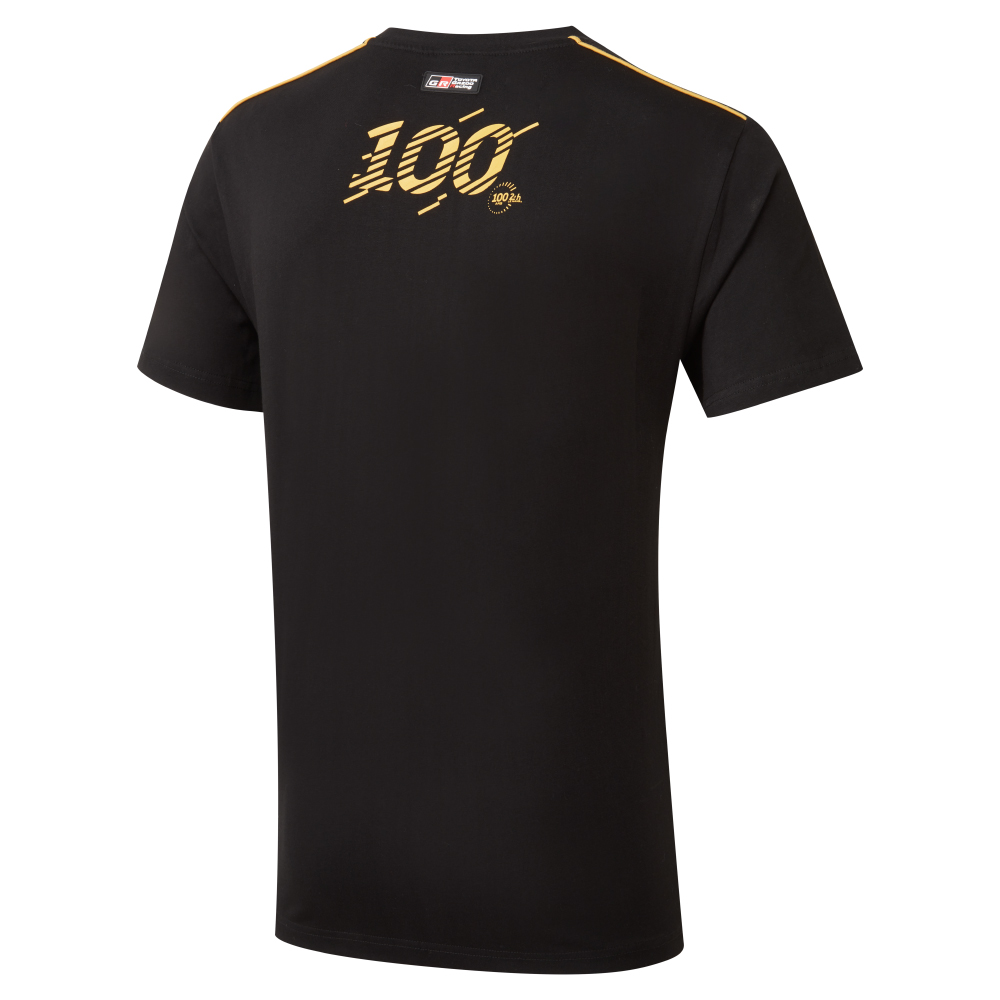 Spezielles TOYOTA GAZOO Racing-T-Shirt zur Feier von 100 Jahren Le Mans. Dieses klassische T-Shirt hat Goldakzente rundum¸ ein Kragenband im Markendesign¸ die offizielle ACO-100-Jahr-Grafik auf Vorder- und Rückseite und ein geripptes Rundhalsbündchen¸ die das Markendesign betonen.