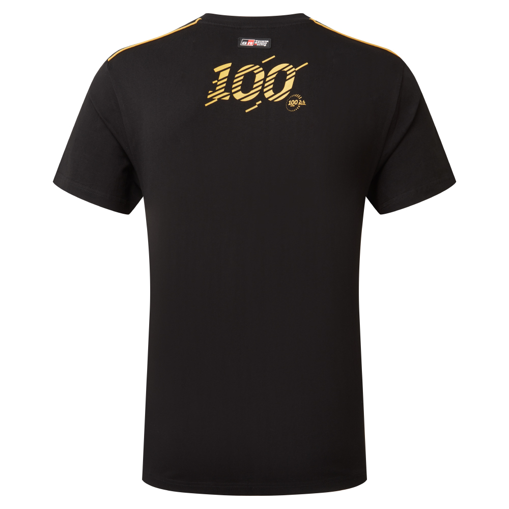 Spezielles TOYOTA GAZOO Racing-T-Shirt zur Feier von 100 Jahren Le Mans. Dieses klassische T-Shirt hat Goldakzente rundum¸ ein Kragenband im Markendesign¸ die offizielle ACO-100-Jahr-Grafik auf Vorder- und Rückseite und ein geripptes Rundhalsbündchen¸ die das Markendesign betonen.