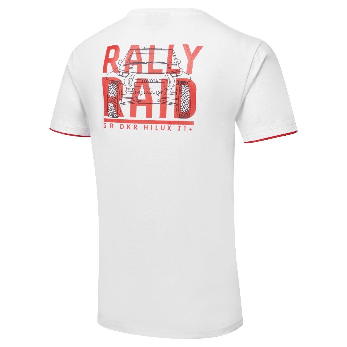 Das weiße TOYOTA GAZOO Racing Rally Raid-T-Shirt ist nicht nur Sportbekleidung¸ sondern ein Symbol für Ihre Team-Unterstützung. Die markante rote GR DKR Hilux Evo T1U-Grafik auf der Rückseite und das Team-Logo machen das Stück zu einem echten Unikat. Das Design vereint mit kontrastierenden doppellagigen Ärmelbündchen Stil und Sportlichkeit.