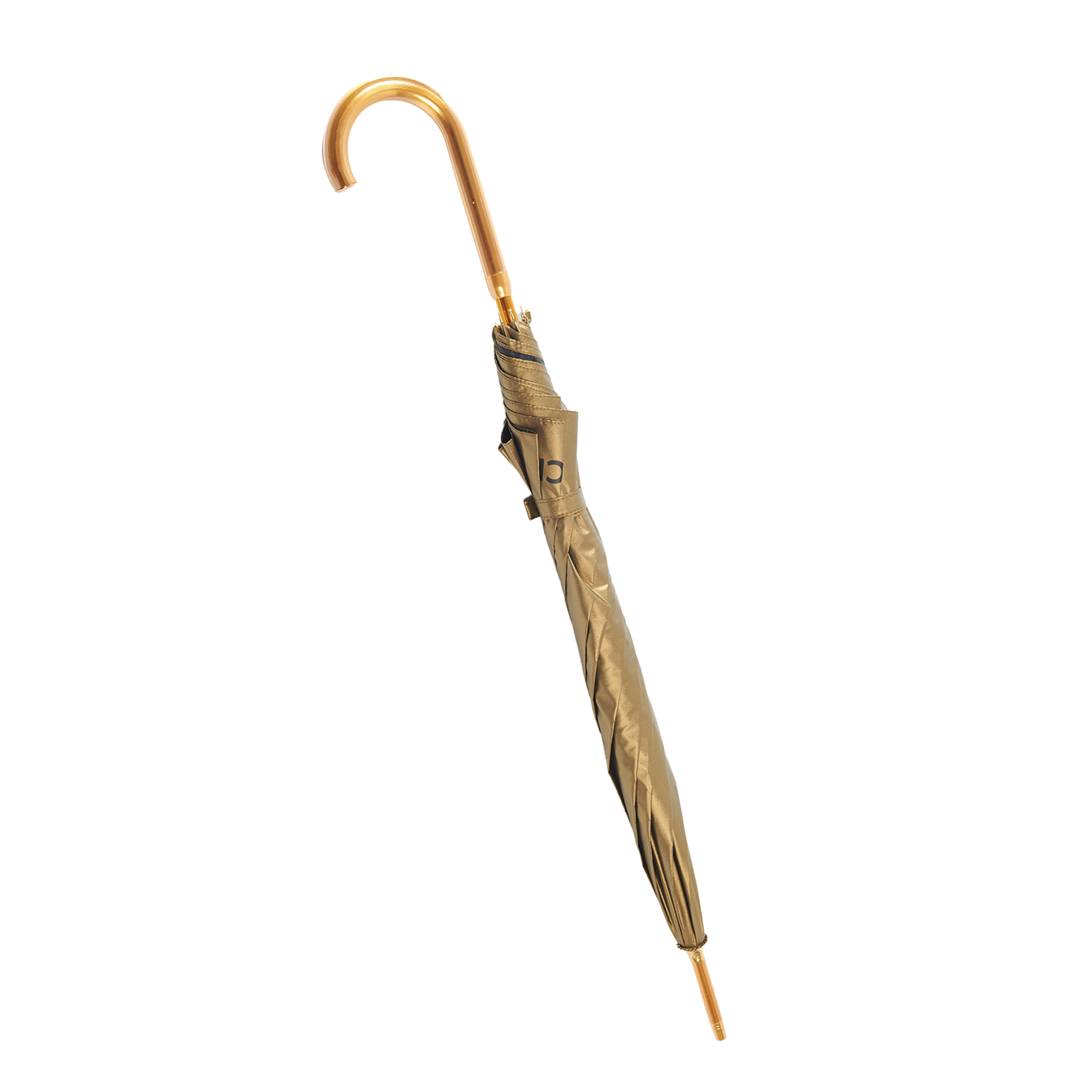 Goldfarbener Pongee (190T) Automatikschirm mit acht Paneelen. Metallrahmen und Aluminium-Schaft und -Griff.