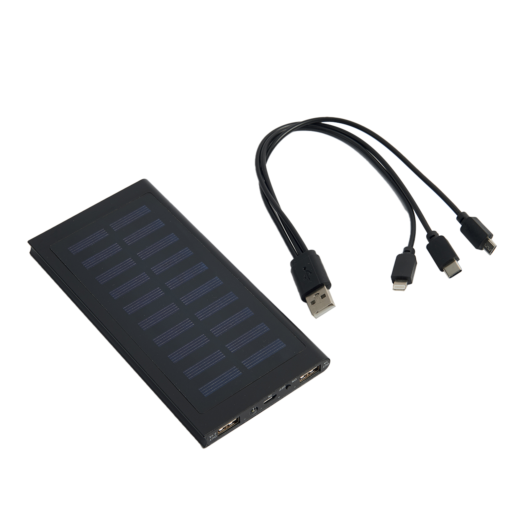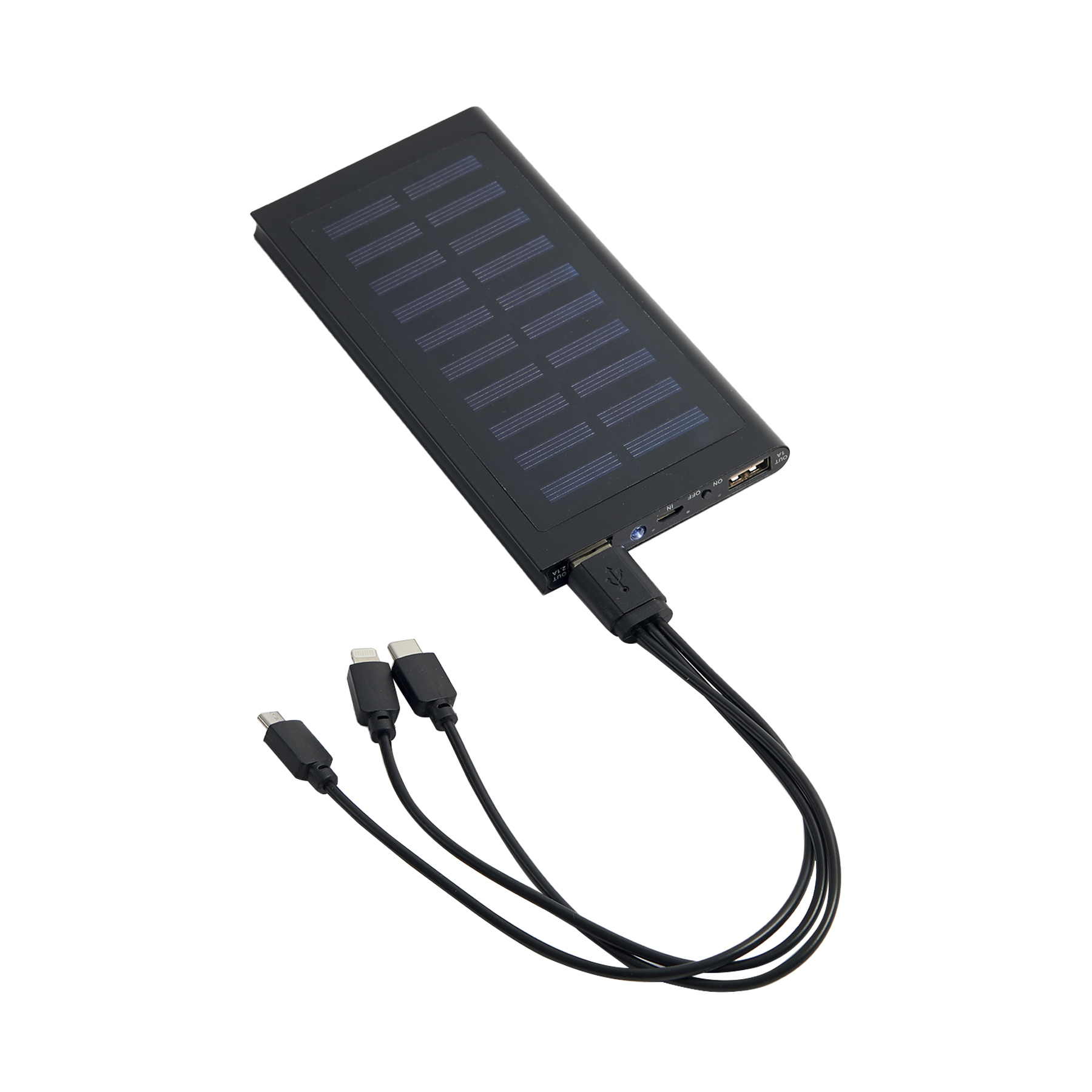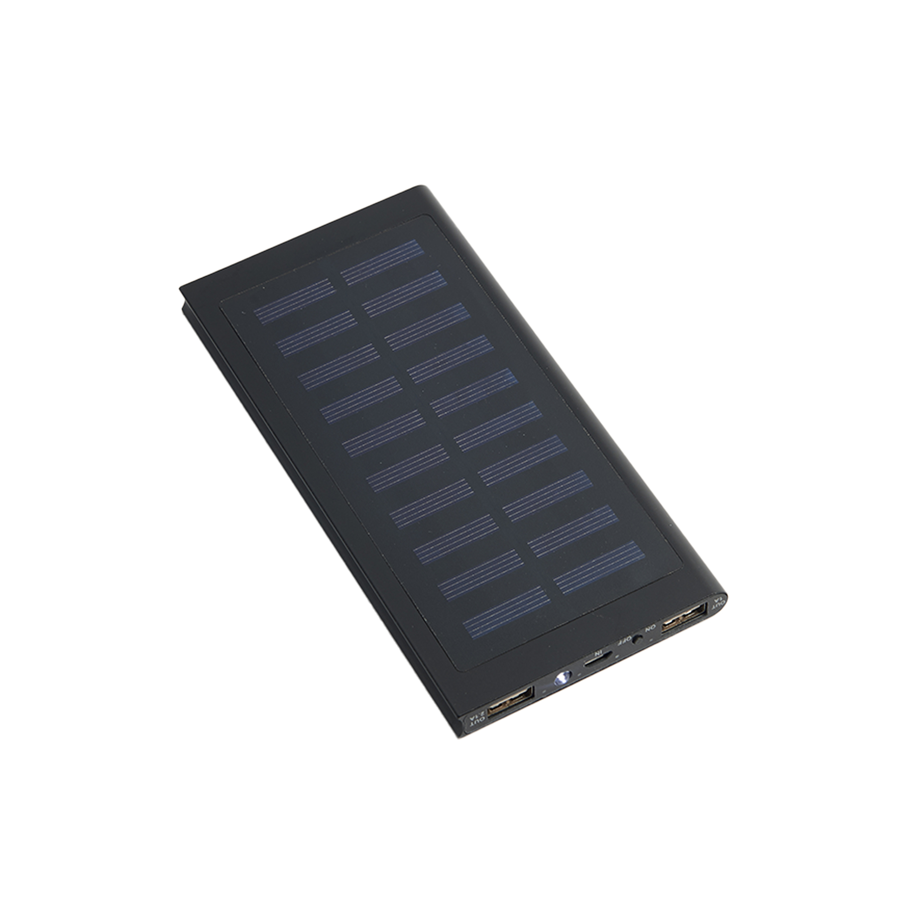 Solar-Powerbank aus Metall mit einer Kapazität von 8000 mAh und USB-Ladekabel. Ermöglicht das mehrmalige Aufladen Ihres Smartphones oder Tablets.