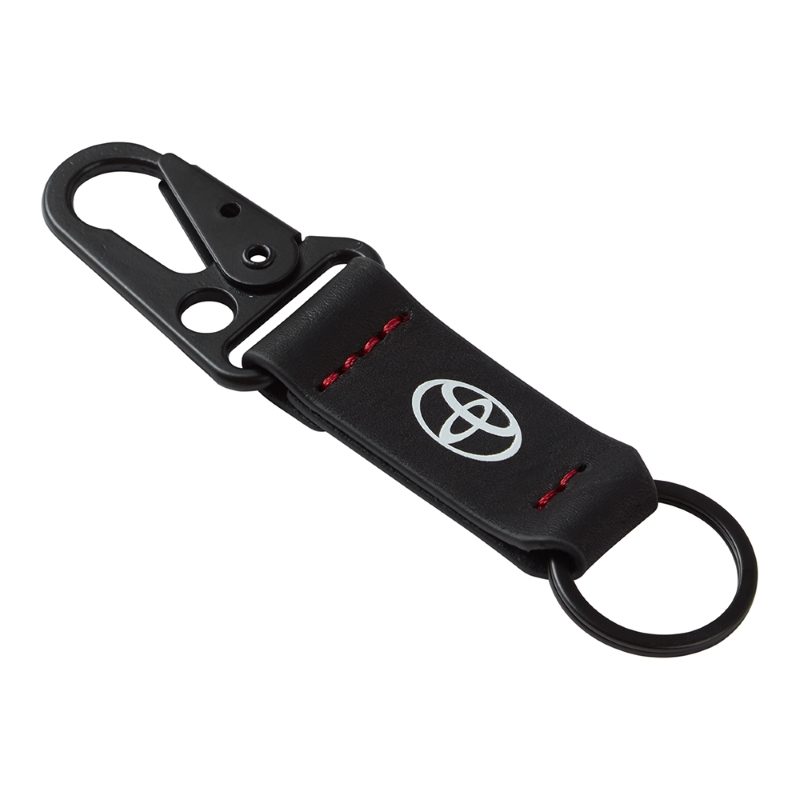 Der Standard-Schlüsselanhänger in völlig neuer Form: ein hochwertiger 110mm-Schlüsselanhänger aus Leder verbindet elegant einen Spaltring mit einem Schmuckkarabiner. Der starke und zuverlässige Schnappverschluss in funktionellem Design ist bequem mit dem Daumen zu öffnen – die TOYOTA-Schlüssel lassen sich so bequem an Gürtel oder Tasche befestigen.