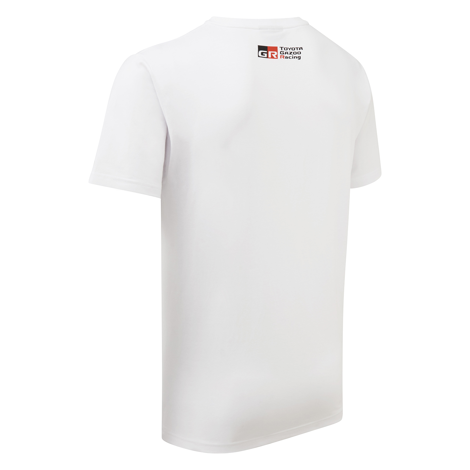 Ein klassisches weißes T-Shirt mit Rundhalsausschnitt anlässlich der Verleihung des Titels „Hersteller des Jahres 2018 für die Rallye-Weltmeisterschaft“ an TOYOTA GAZOO Racing.
