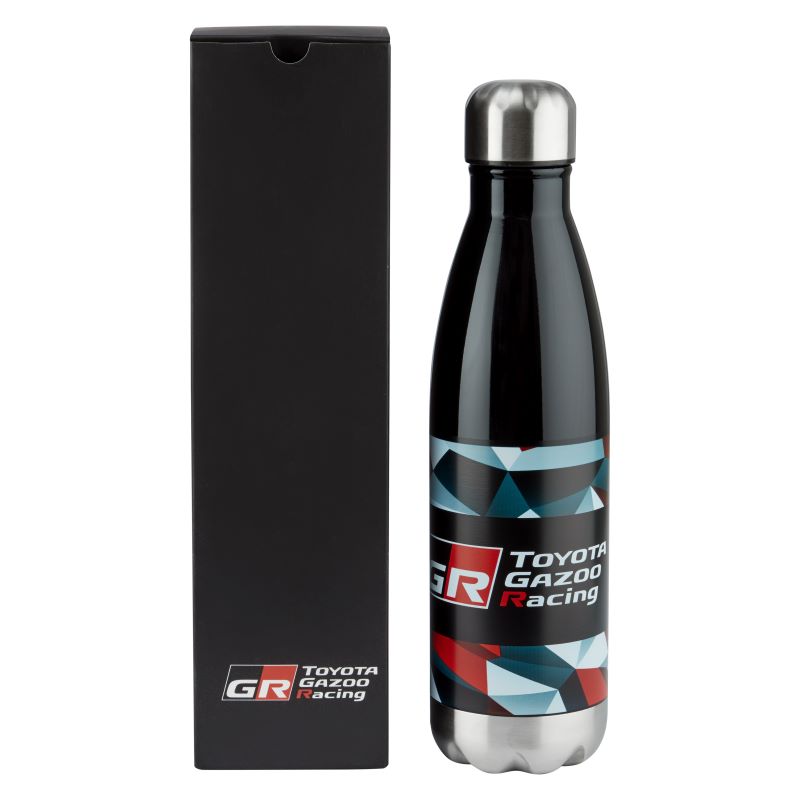 • Die vom GR-Tarnmuster inspirierte Flasche mit schwarzem Soft-Touch-Überzug zeigt auf der Vorderseite das TOYOTA GAZOO Racing-Logo.