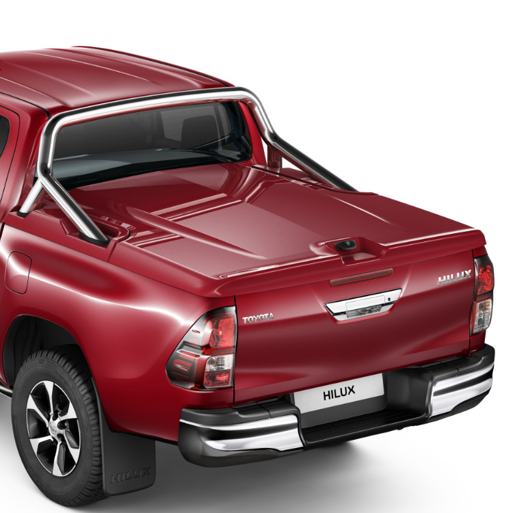 Die aufklappbare, abschließbare Abdeckung bietet einen robusten Schutz und eine vollständige Öffnung des Decks. Das starre Mittelstück sorgt dafür, dass Wasser oder Schnee leicht abrutschen, während der integrierte Spoiler den sportlichen Look des Hilux unterstreicht. Kompatibel mit dem optionalen hohen Überrollbügel.