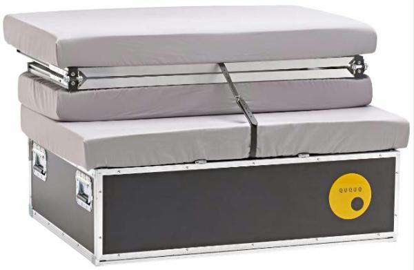 QUQUQ® Camping-Box Lieferumfang: - 1 x ausklappbares Bett (110 cm x 195 cm, 10 cm Stärke, 3-teilig, Kaltschaummatratze), Bezüge abnehmbar und waschbar, zur Ablage auf den Rücksitzlehnen oder auf Fahrzeugboden aufstellen - 1 x Kochschublade mit Staufach - 1 x 2-Flamm-Kocher mit Kartusche - 2 x 10-l-Wasserkanister und 2 Schüsseln - 1 x großes Staufach (40 cm x 30 cm x 23,5 cm)