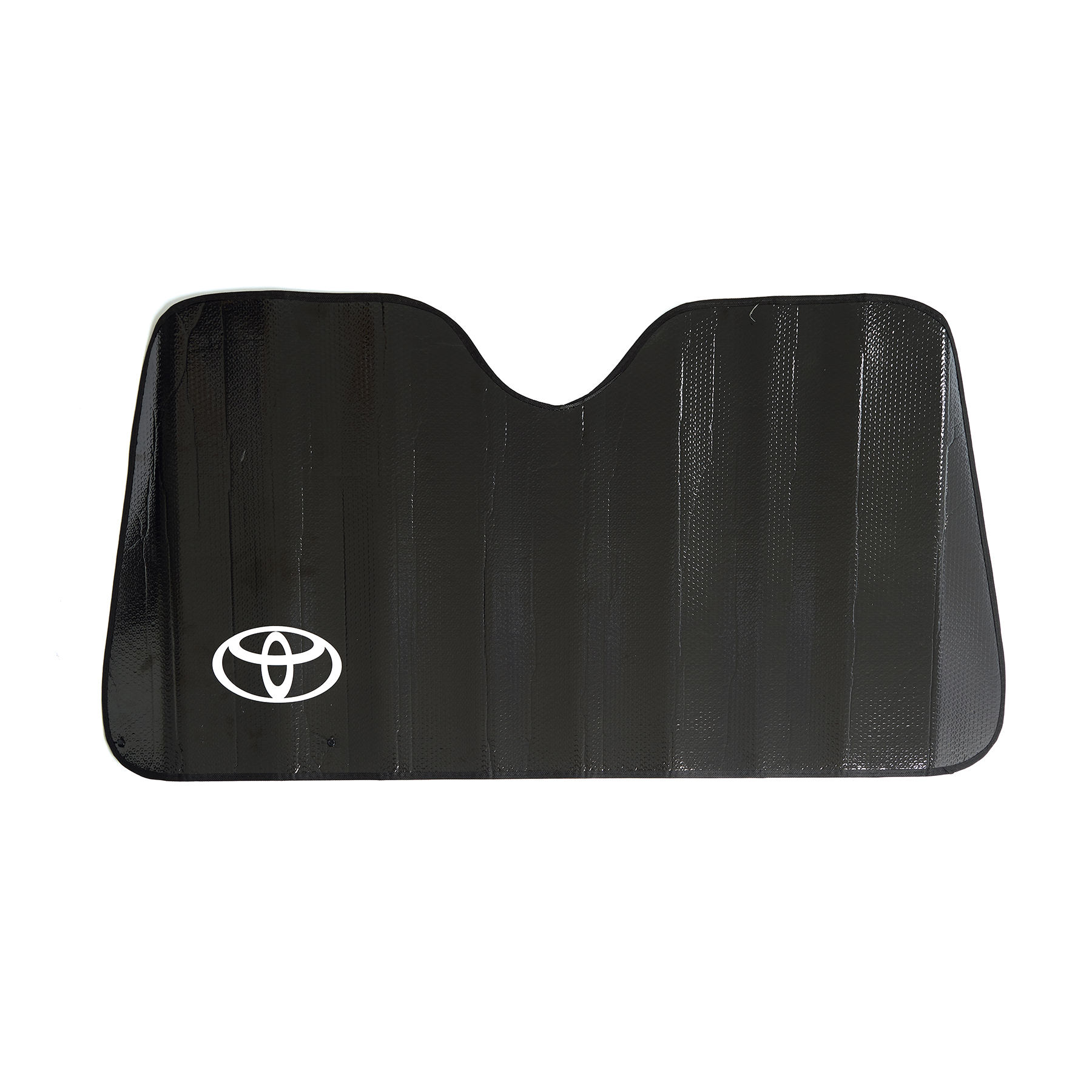 Faltbare Frontscheibenabdeckung aus beidseitig schwarzer Alu-Luftpolsterfolie beschichtet mit Metallfolie und schwarz eingefasst. Perfekter Wetterschutz für Ihr Auto im Sommer wie im Winter. Größe: 130 x 70 cm.