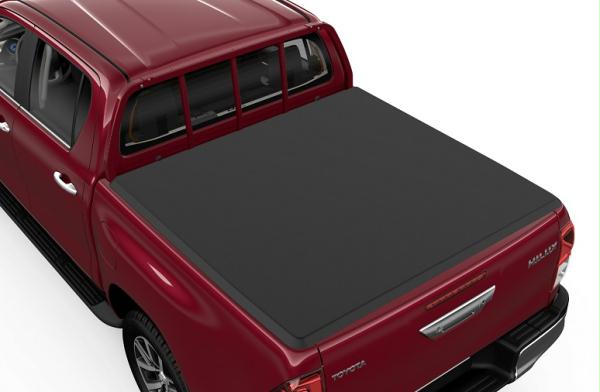 Die schwarze Vinylabdeckung schützt Ihre Ladung bei jedem Wetter.