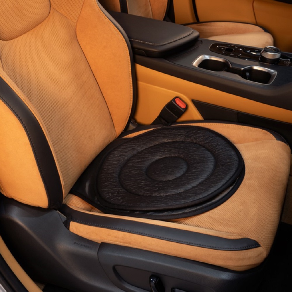 Das Drehkissen kann auf den Vorder- oder Rücksitzen installiert werden. Es dient dazu, den Ein- und Ausstieg aus dem Fahrzeug durch eine Schwenkbewegung des Kissens zu erleichtern.