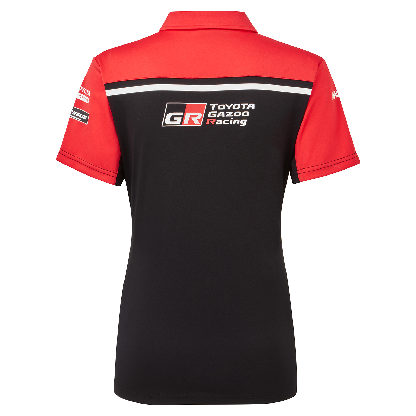 Dieses maßgeschneiderte Polohemd zeigt auf der Vorderseite und an den Ärmeln die Markenzeichen von Team und Sponsoren sowie auf dem Rücken das TOYOTA GAZOO Racing-Logo.