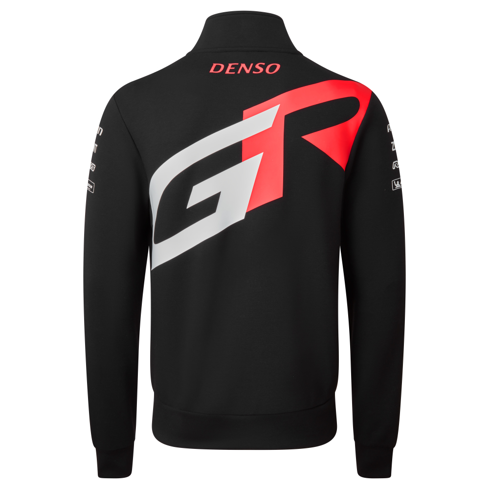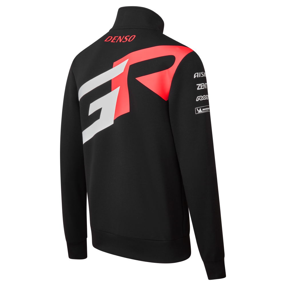 Schwarze Team-Sweatjacke aus hochwertigem Material mit Reißverschluss¸ Vorder- und Rückseite bedruckt mit GR-Logo und den Teampartner-Logos 2023. Mit GR- und Sponsoren-Logos¸ Reißverschlüssen mit Griffen im Markendesign¸ zwei Eingrifftaschen mit kontrastierendem Reißverschluss und Bündchen an Saum und Ärmeln.